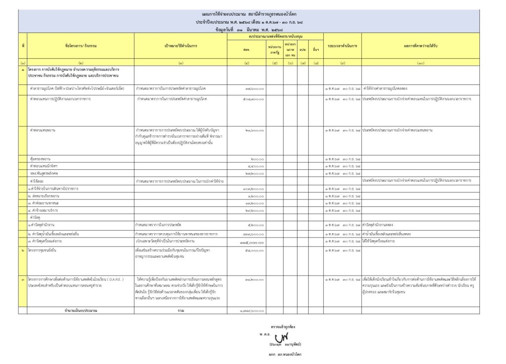 แผนการใช้จ่ายงบประมาณ สถานีตํารวจ