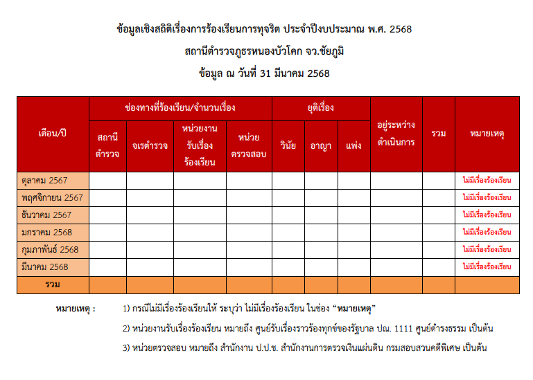 O17 ช่องทางการแจ้งเรื่องร้องเรียนการทุจริตและข้อมูลเชิงสถิติเรื่องร้องเรียนการทุจริต